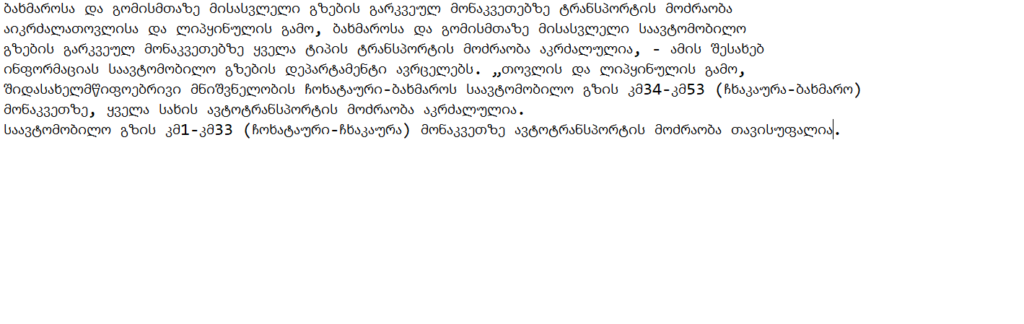 “Because of snow and ice, traffic is banned for all types of vehicles on the Chokhatauri–Bakhmaro national road, from km 34 to km 53 (Chkakhaura–Bakhmaro).